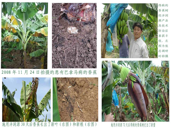 本公司用其最近研制的沣润源土壤调理香蕉专用型产品及技术在海南省、广东省对治疗香蕉“巴拿马”病进行了有益尝试,取得了成功。